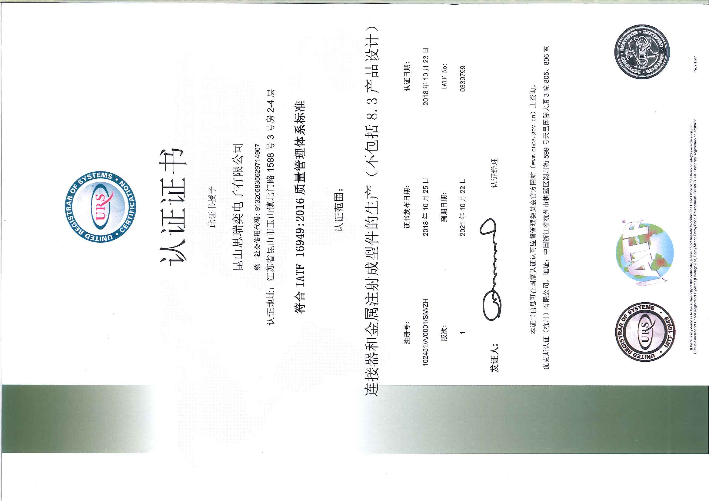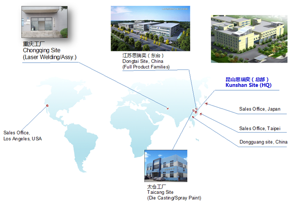 思瑞奕電子有限公司成立于2010年10月,注冊(cè)資金7500萬人民幣,總部位于江蘇省昆山市,在重慶、江蘇東臺(tái)、江蘇太倉設(shè)有分廠,公司于2011年通過ISO9001/ISO14001認(rèn)證,2013年通過高新技術(shù)企業(yè)和TS16949(IATF)體系認(rèn)定,2016年先后通過知識(shí)產(chǎn)權(quán)管理體系認(rèn)證、安全生產(chǎn)標(biāo)準(zhǔn)化認(rèn)證,2017年獲頒江蘇省民營科技企業(yè)、2018年先后獲得蘇州市人民政府認(rèn)定企業(yè)技術(shù)中心、科技部認(rèn)定中小型科技企業(yè)、江蘇省最具成長(zhǎng)性高科技企業(yè)、2020年獲得江蘇省人民政府認(rèn)定企業(yè)技術(shù)中心、2021年獲得蘇州市瞪羚計(jì)劃入庫企業(yè)、江蘇省省級(jí)工程技術(shù)研究中心、江蘇省專精特新中小企業(yè)等榮譽(yù)稱號(hào)......